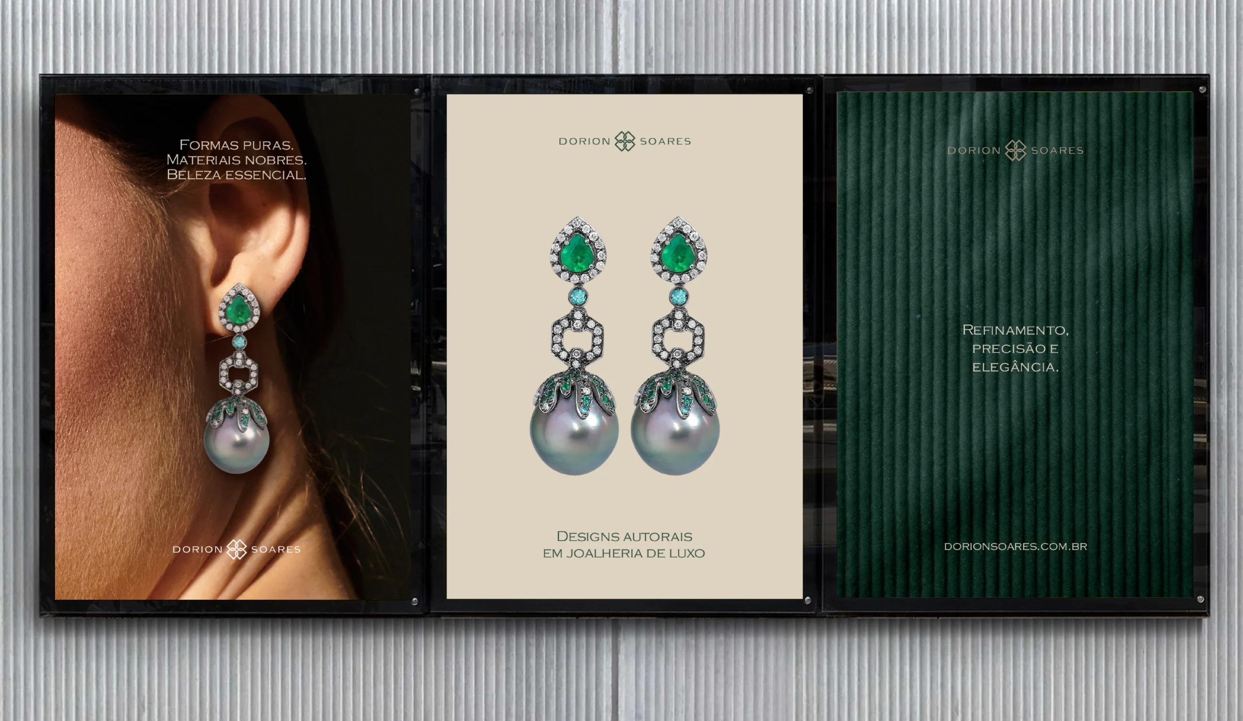 A nova identidade se desdobra de forma coesa em todos os pontos de contato da Dorion Soares: redes sociais, site, embalagens e pontos de venda. O resultado é uma experiência sensorial completa, onde olhar, voz e sensação se conectam para comunicar luxo, precisão e emoção.