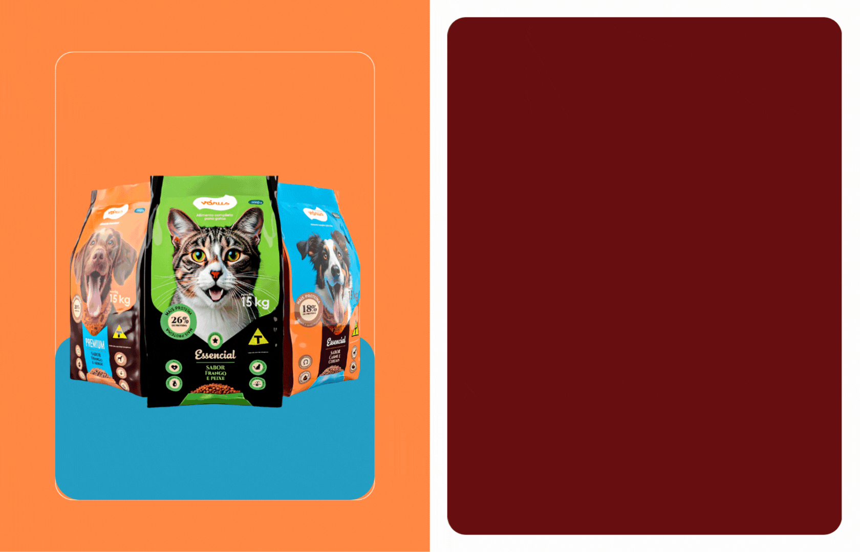 As embalagens traduzem energia, vitalidade e o toque de realeza que os pets merecem. Porque na Vórus, até a embalagem precisa ter personalidade.
